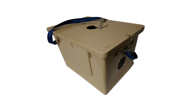 Na bocích jsou větrací otvory, které jsou zasíťované nerezovým pletivem. Ve víku je uzavíratelný odklopný otvor, který lze v podletí využít po nasazení smyku k tvorbě smetenců. Bedna je opatřena popruhem, karabinkami a zajišťovacími závlačkami.